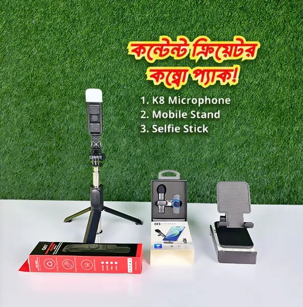 আপনি যদি একজন ইউটিউবার, রিলস মেকার, লাইভ সেলার বা কনটেন্ট ক্রিয়েটর হয়ে থাকেন, তাহলে এই প্যাকেজটি আপনার জন্য আদর্শ। ১টি প্যাকেজেই পাচ্ছেন ৩টি অত্যন্ত প্রয়োজনীয় গ্যাজেট: